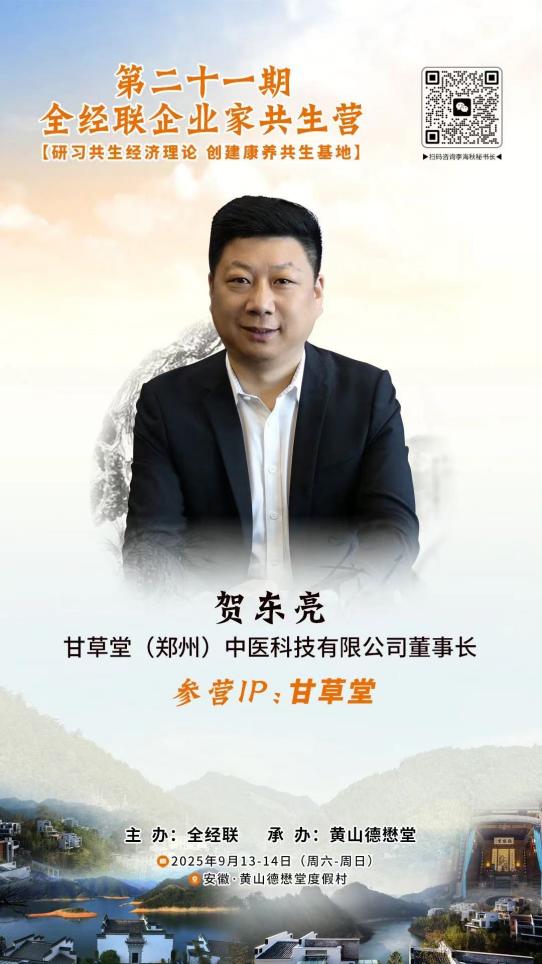 贺东亮先生作为“甘草堂中医”创始人,是一位极具魄力的新时代健康创领者。他开创的甘草堂以社区为阵地,深度融合传统中医养生、养老与中医慢病管理,并实现连锁化发展,是社区医养融合模式的践行者、示范者。贺东亮先生高度认同共生经济理论对甘草堂的战略价值,并期望加入全经联,深度链接康养资源,跨界共创社区康养新IP,以共生实践普惠慢病群体,为全经联幸福产业生态注入独特的中医智慧与产业动能。特此诚挚推荐!